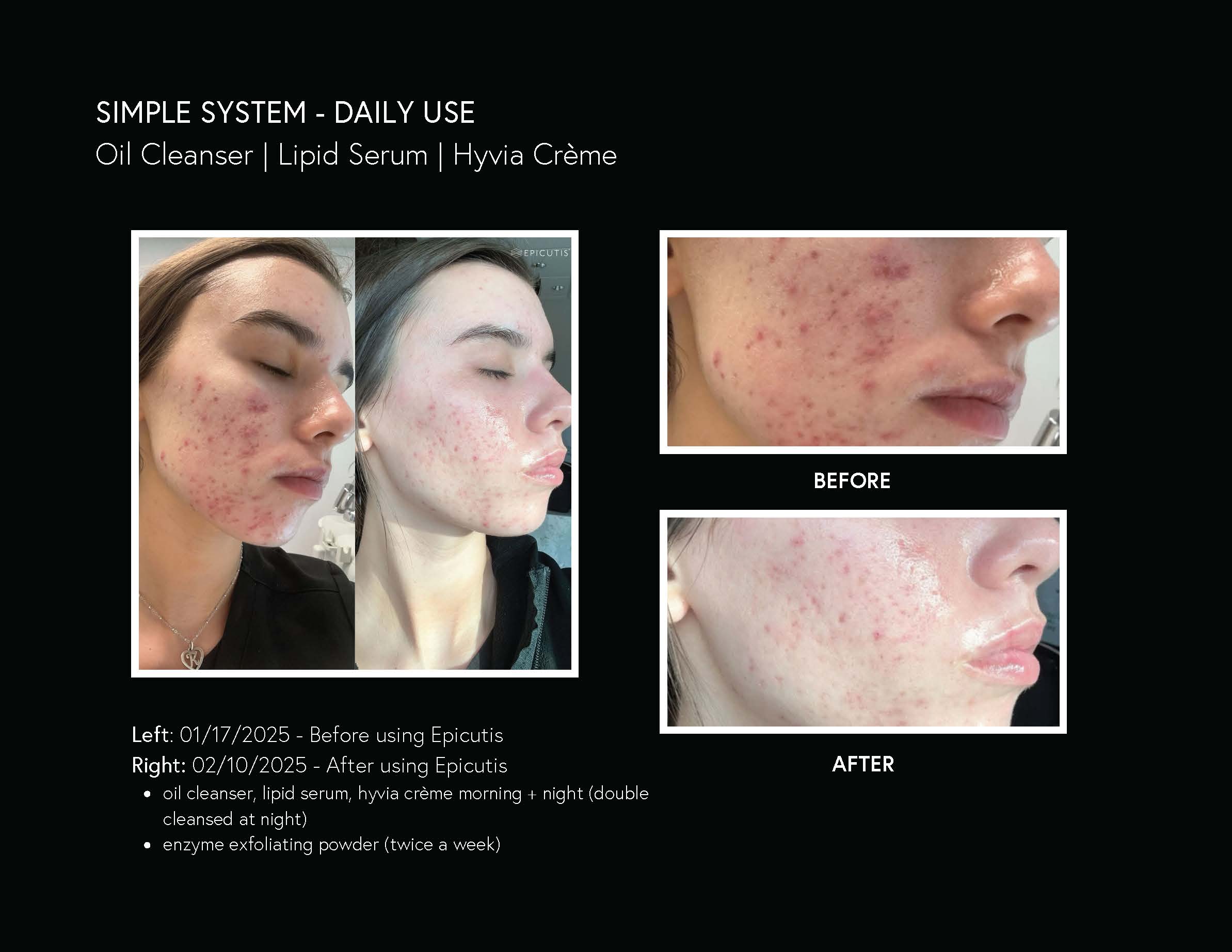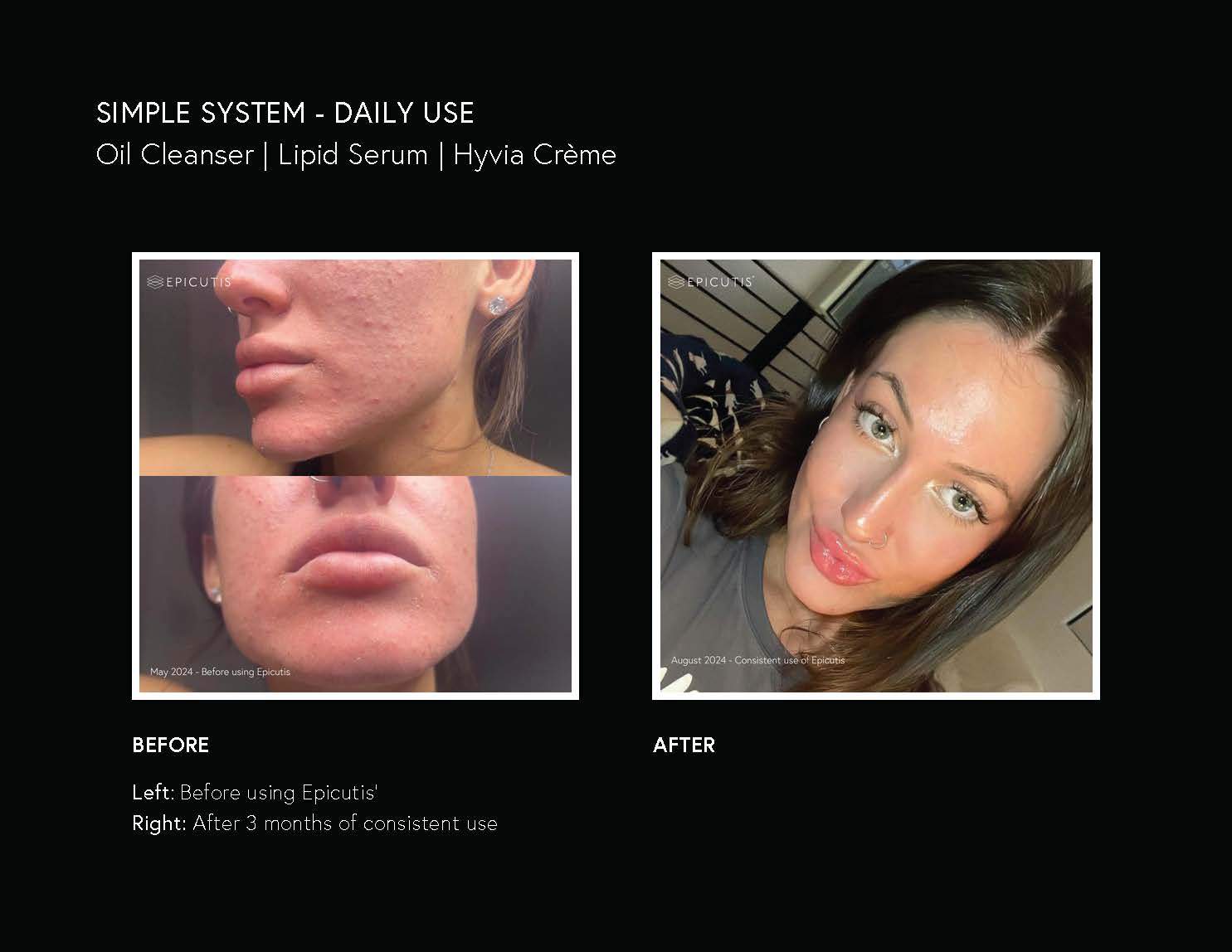 Este potente dúo incluye el Suero Lipídico y la Crema Hyvia®, ambos formulados con ingredientes patentados y respaldados por la ciencia de Epicutis.