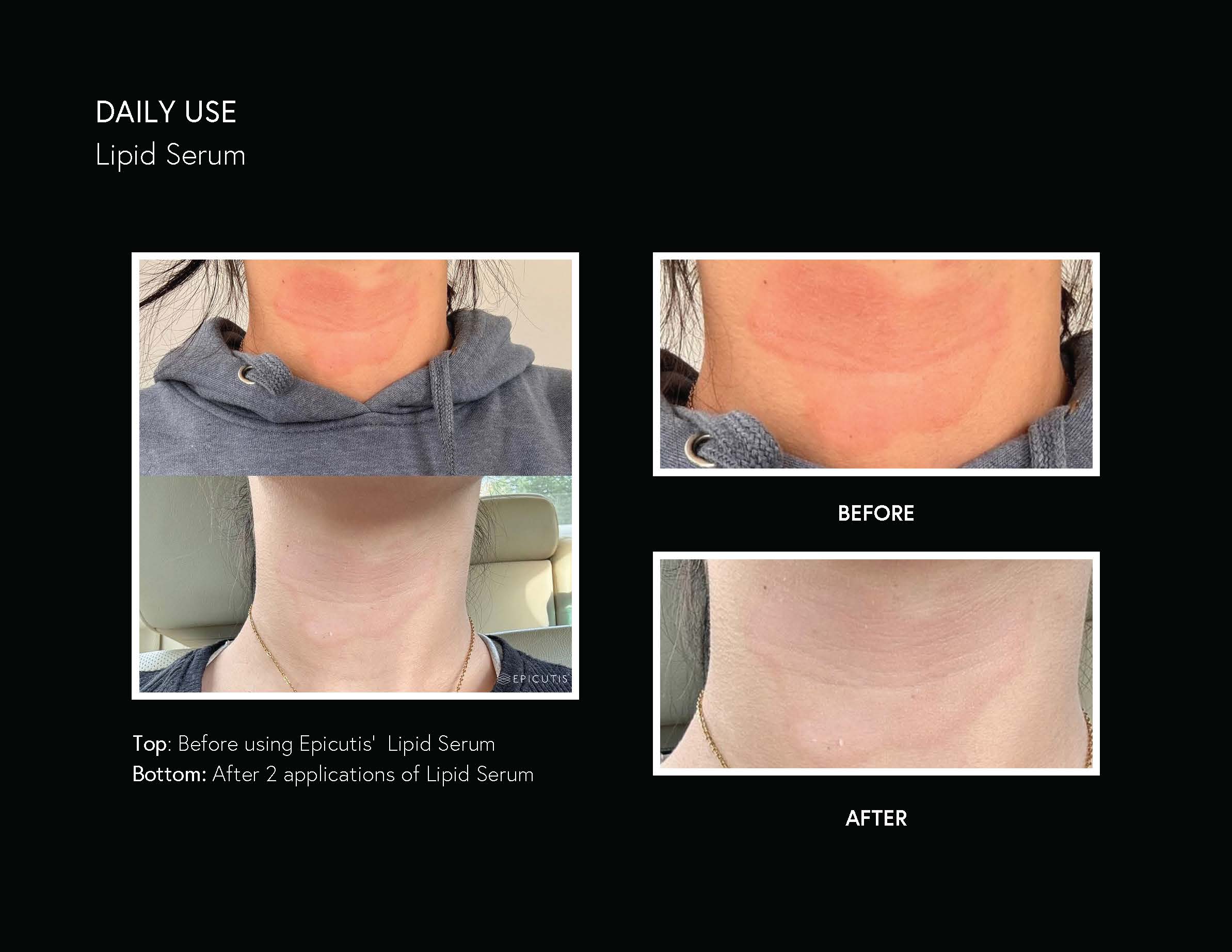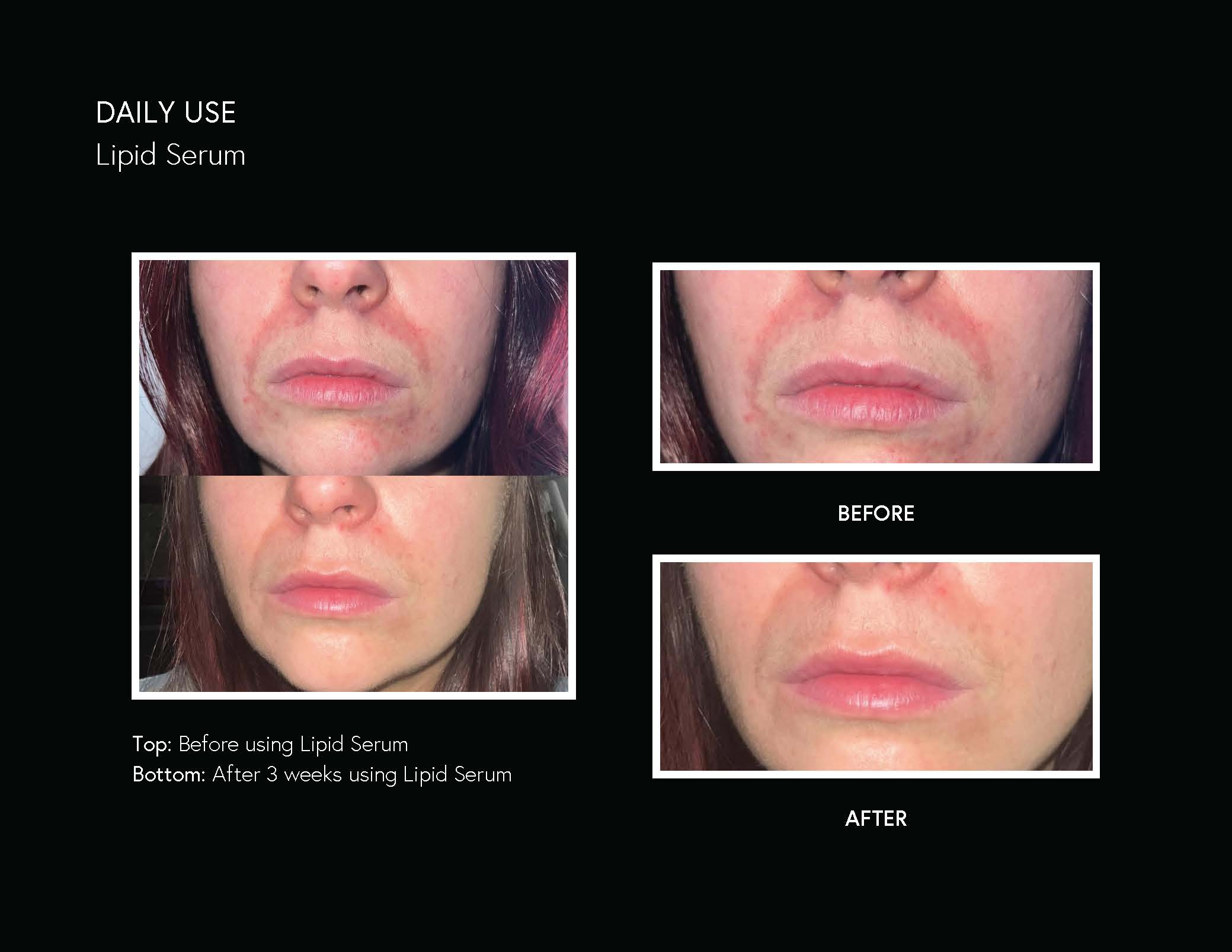 - El Suero Lipídico proporciona un alivio rápido a la piel estresada o después de un procedimiento, con una textura calmante y sedosa que se absorbe rápidamente y ayuda a prevenir la degradación del colágeno.