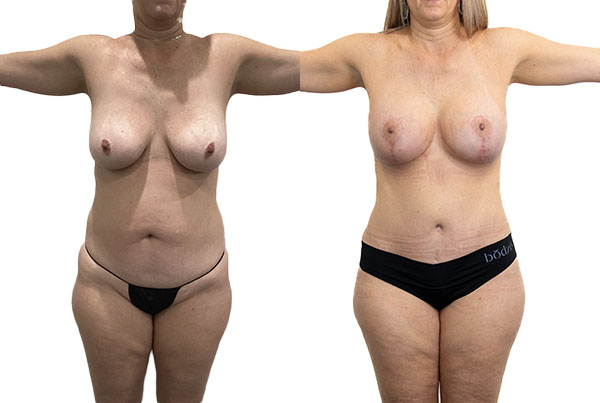 Con 37 años, 1,70 m de estatura y 72 kg de peso, nuestra paciente quería afinar la forma de su cuerpo y conseguir un aspecto más tonificado y levantado. El Dr. Khairalla le practicó un Mommy Makeover, combinando una abdominoplastia para tensar y aplanar el abdomen con una mastopexia (elevación mamaria) para elevar y remodelar los senos. La intervención le proporcionó un abdomen más liso y firme y unos senos más juveniles y elevados, creando una silueta equilibrada y rejuvenecida.