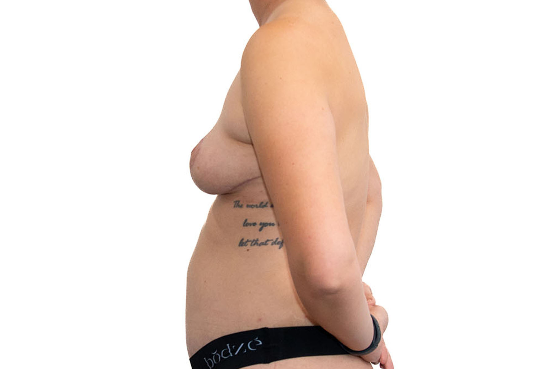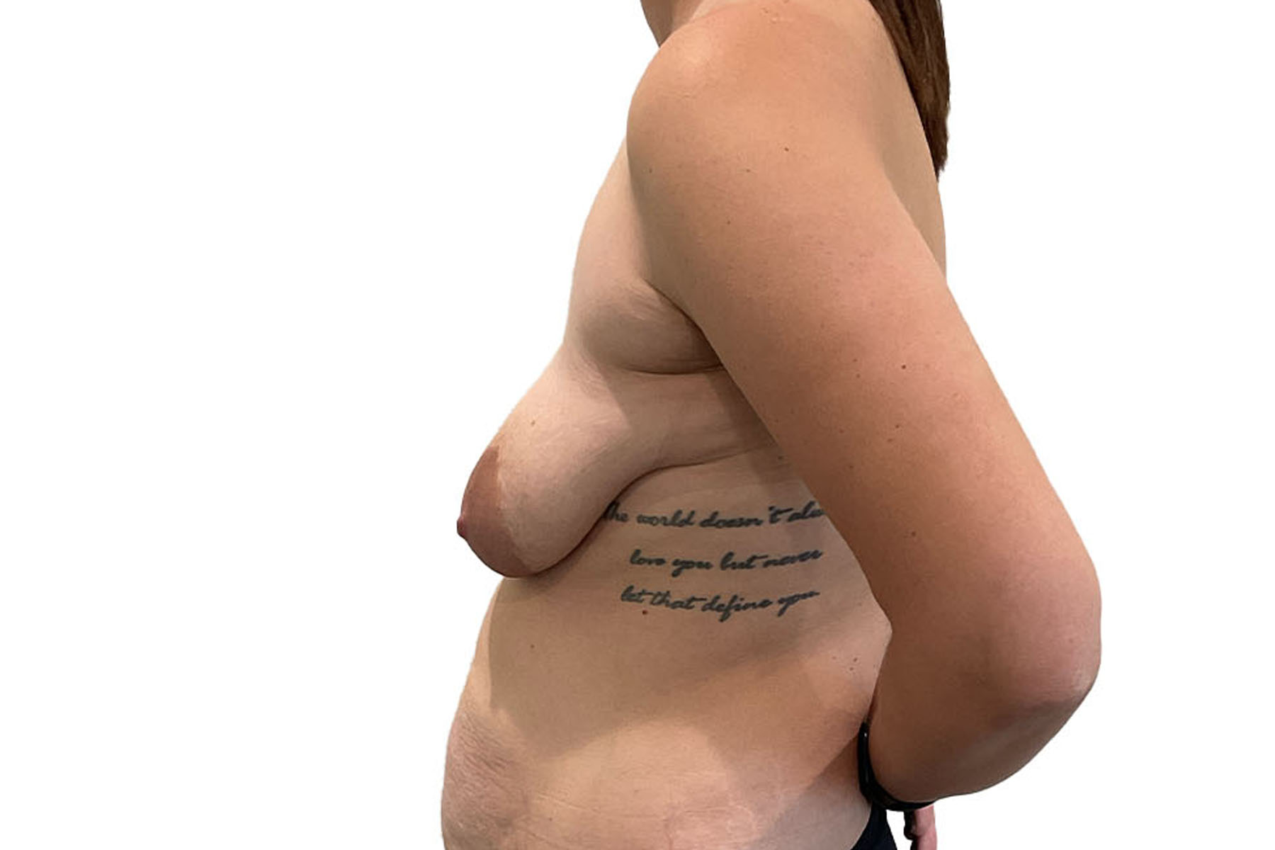 At 31 years old, standing 5’10” and weighing 190 pounds, our patient sought to improve the shape and position of her breasts. Dr. Khairalla performed a breast lift to elevate and reshape her breasts, addressing sagging and restoring a more youthful contour. The procedure provided her with a lifted and balanced appearance, enhancing her overall silhouette and complementing her tall frame.