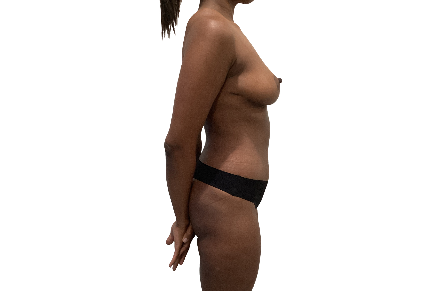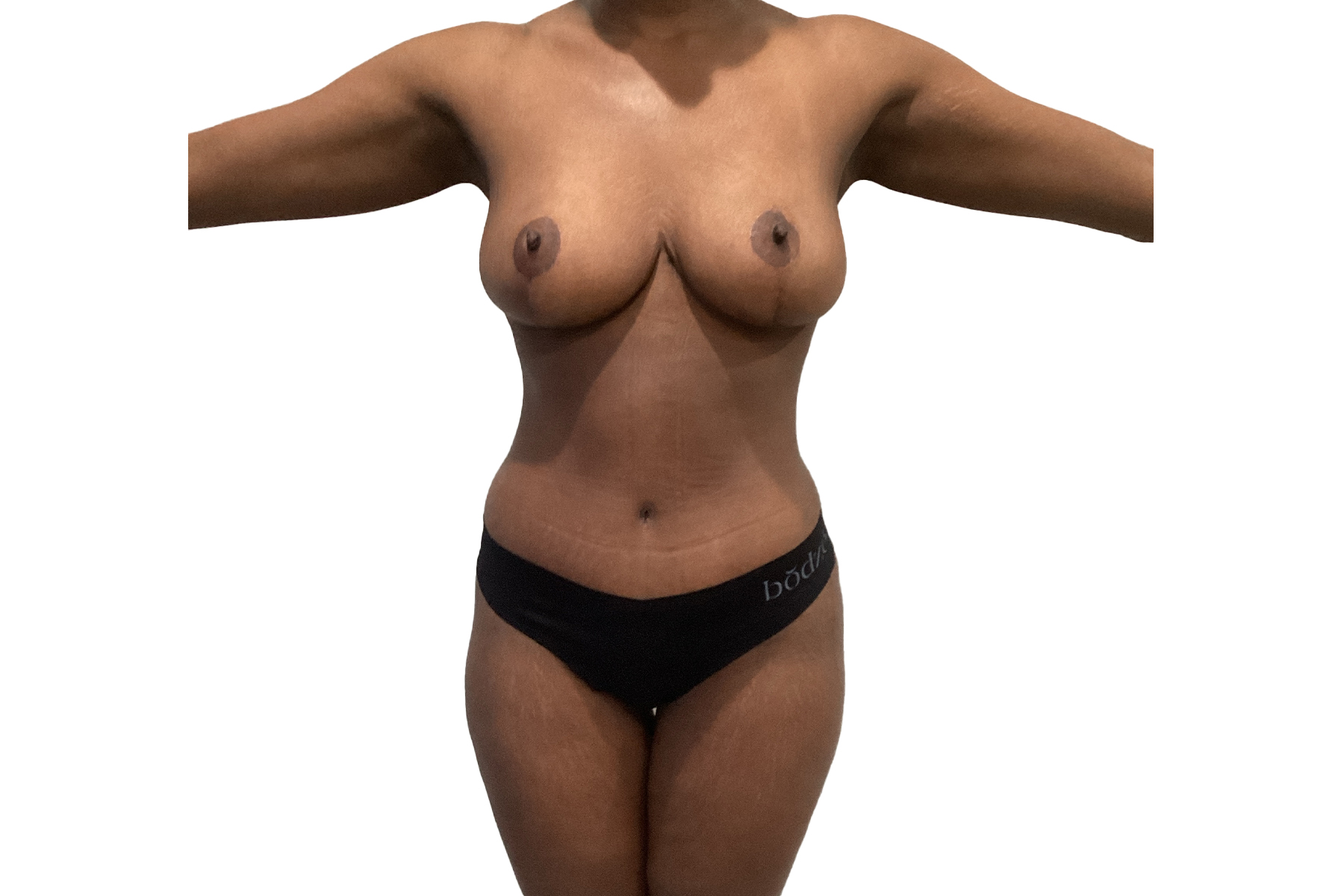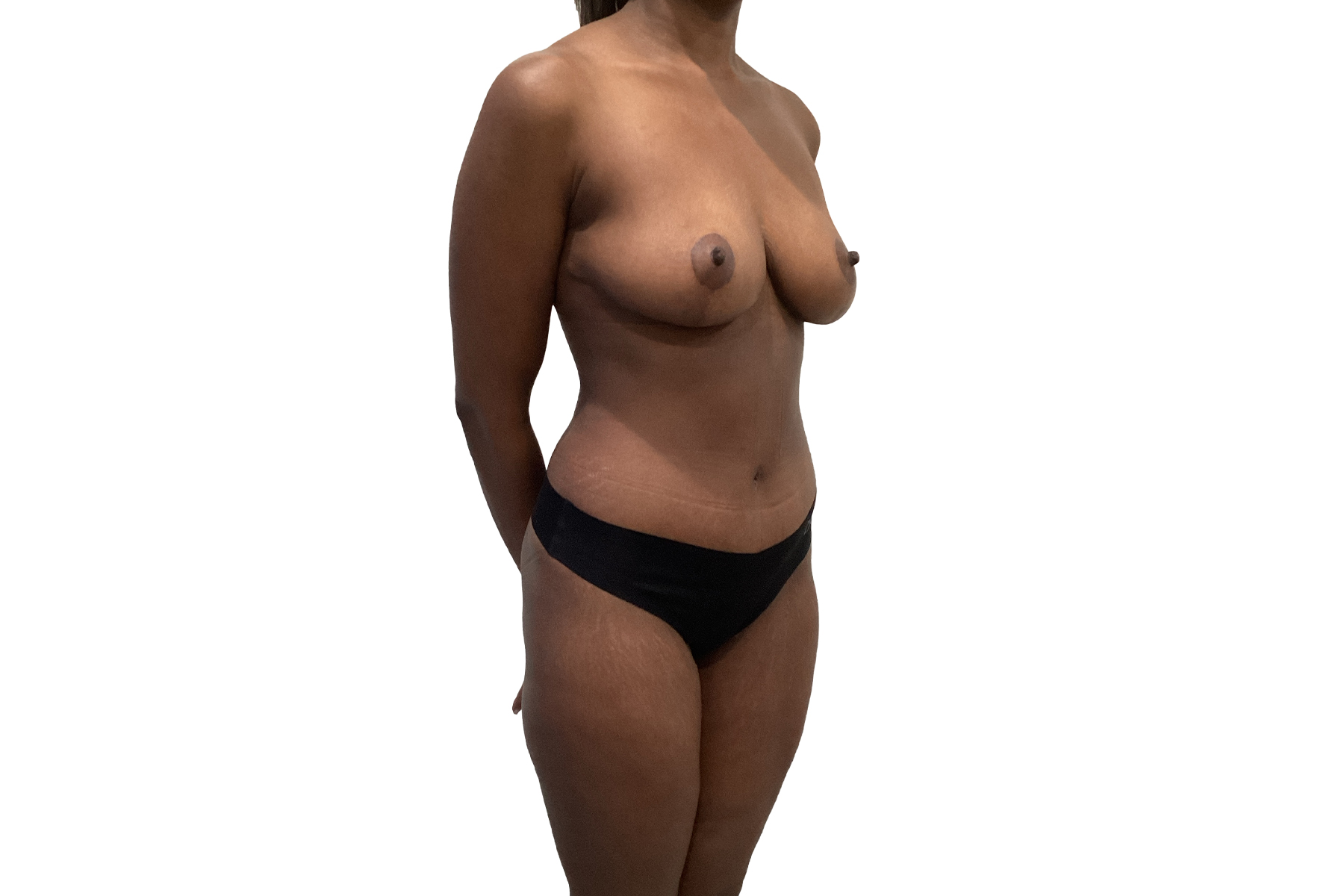 At 35 years old, standing 5’5” and weighing 134 pounds, our patient sought relief from the discomfort caused by overly large breasts. Dr. Khairalla performed a breast reduction, reducing excess tissue to create a more balanced, proportionate size. This procedure not only improved her physical comfort but also enhanced her overall body contours. As part of her Mommy Makeover, this surgery helped her achieve a more confident and comfortable figure.