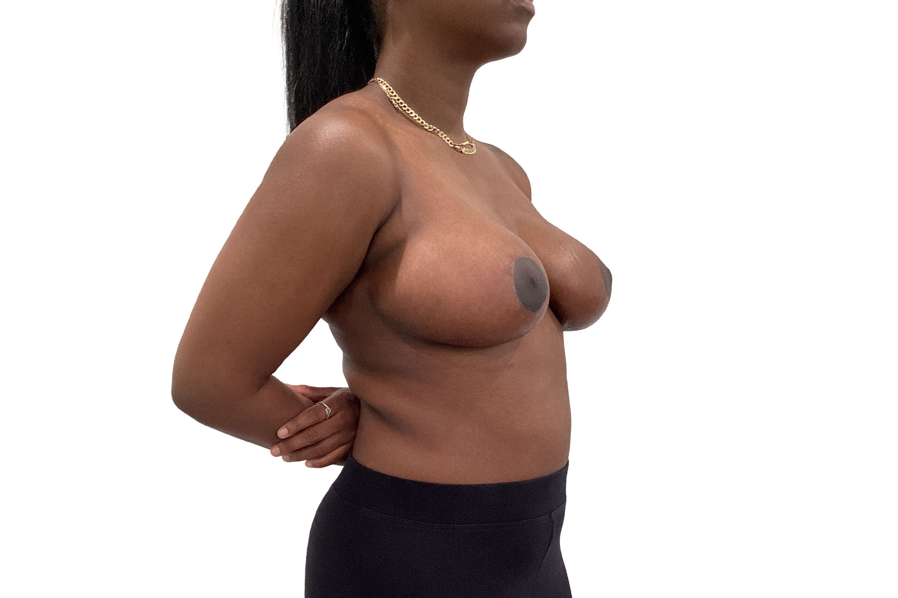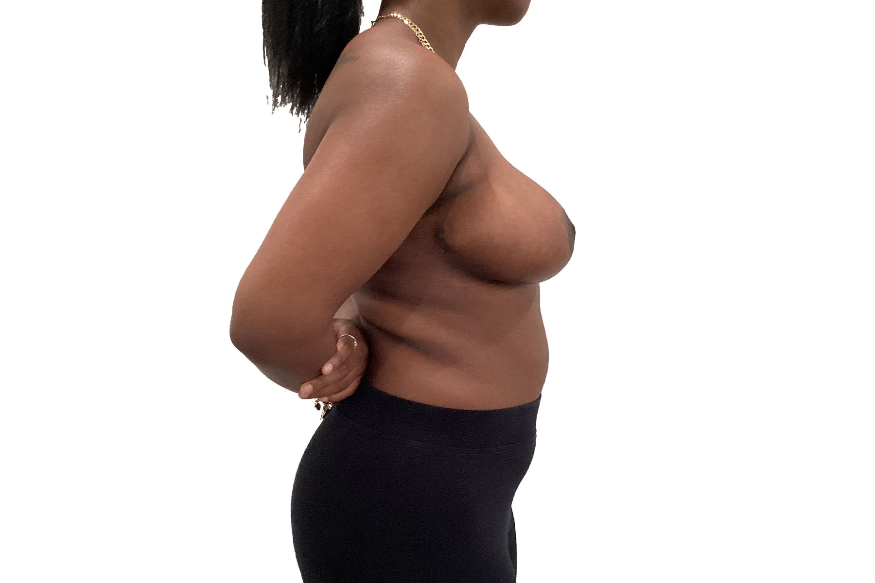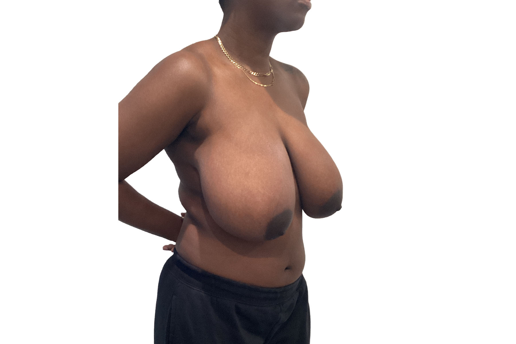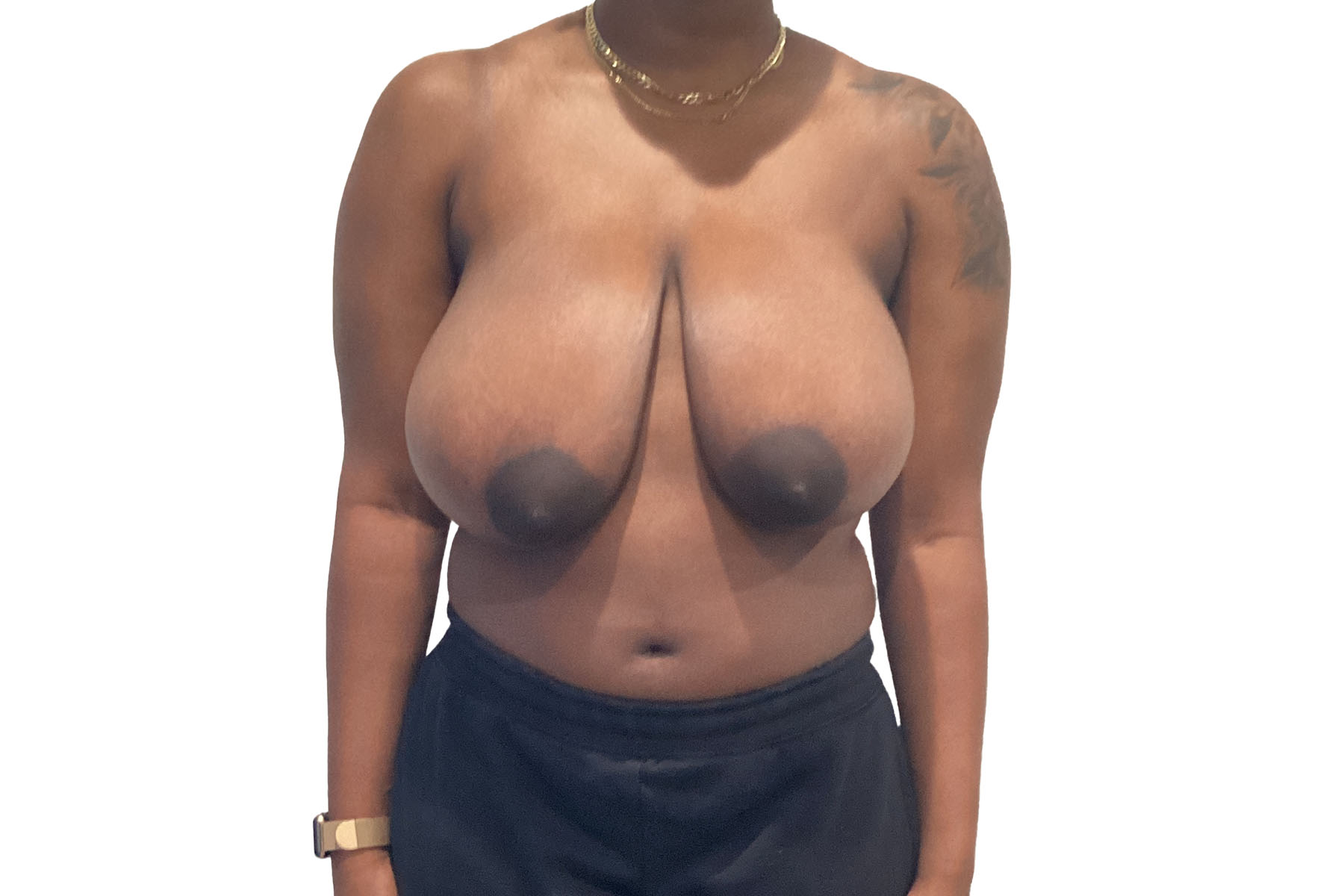 At 23 years old, standing 5’6” and weighing 156 pounds, our patient sought relief from the discomfort associated with overly large breasts. Dr. Khairalla performed a breast reduction, reducing excess tissue to create a more balanced and proportionate size. This procedure not only improved her physical comfort, alleviating strain on her back and shoulders, but also enhanced her overall body proportions.