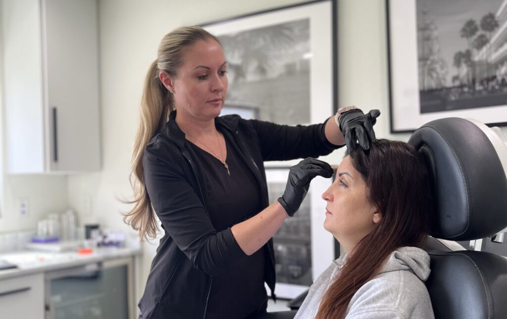 A Lip Flip is a non-invasive cosmetic procedure that uses botulinum toxin injections to relax the muscles around the lips. This results in the upper lip “flipping” slightly upward and outward, creating a fuller appearance without adding volume. The procedure enhances the natural shape of the lips and provides a subtle, yet noticeable improvement.